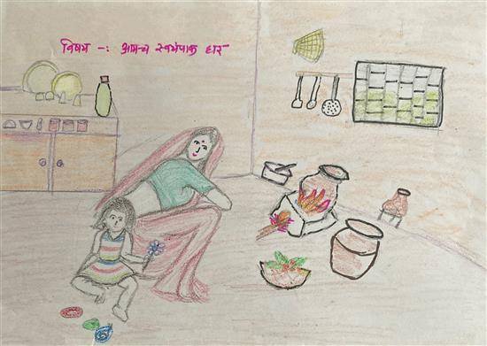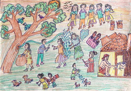 View Details Festival of colors Oil Pastel and Sketch pen on Paper 10.62 x 14.56 inches 26.97 x 36.98 cm