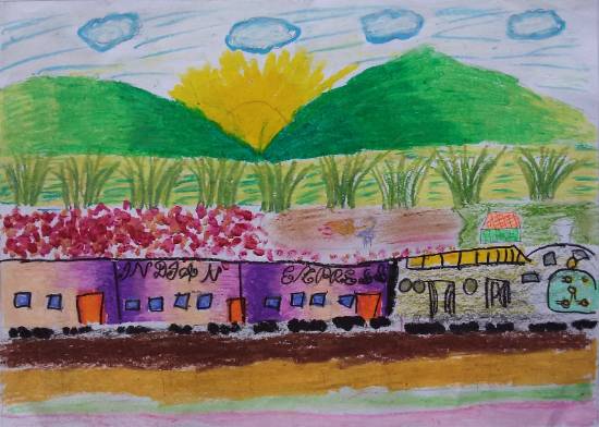 View Details Crossing railway track with mobile is dangerous Oil Pastel on Paper 8.27 x 11.69 inches 21.01 x 29.69 cm
