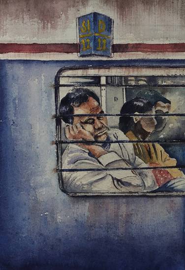 View Details Coolie at Railway station Oil Pastel and Sketch pen on Paper 10.62 x 14.56 inches 26.97 x 36.98 cm