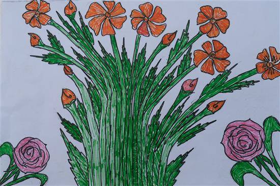 View Details Painting of forest Oil Pastel and Sketch pen on Paper 10.62 x 14.56 inches 26.97 x 36.98 cm