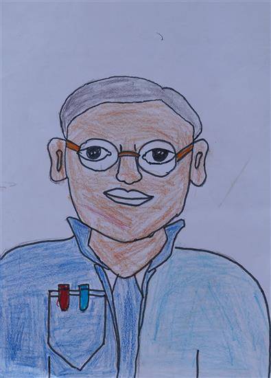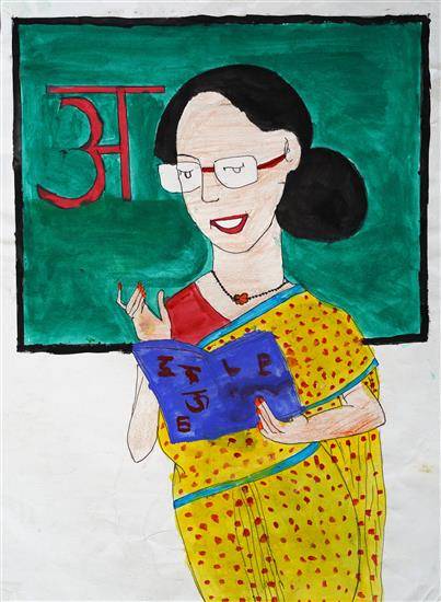 View Details A Geography Teacher Oil Pastel and Sketch pen on Paper 14.76 x 10.82 inches 37.49 x 27.48 cm
