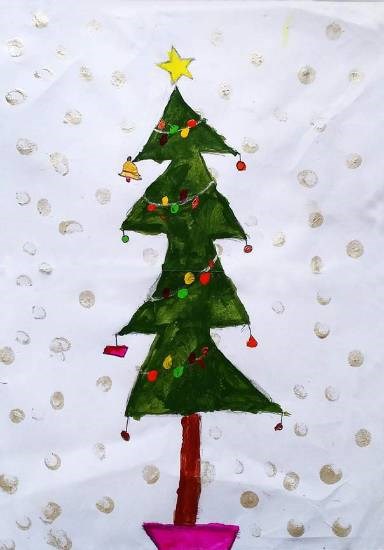 Christmas Tree, painting by Child Artist Chinmayee Anand Naravane