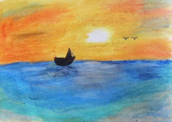 Sunset, painting by Child Artist Tanay Nikheel Kelkar