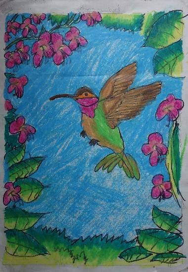 Humming bird, painting by Child Artist Ruhani Sarit Haria