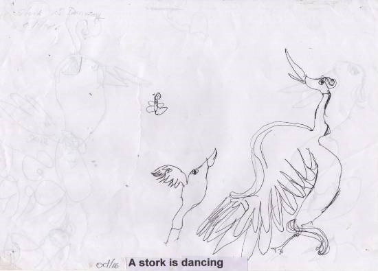 A stork is dancing, painting by Child Artist Sreebhadra Suraj