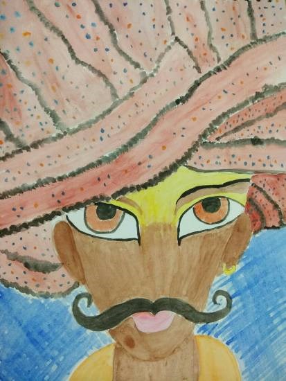 Man with the big turban, painting by Child Artist Arpita Bhat