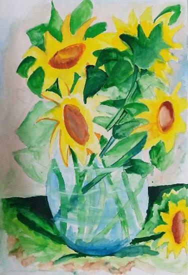 Sunflower Vas, painting by Child Artist Gargei Rahul Lavekar