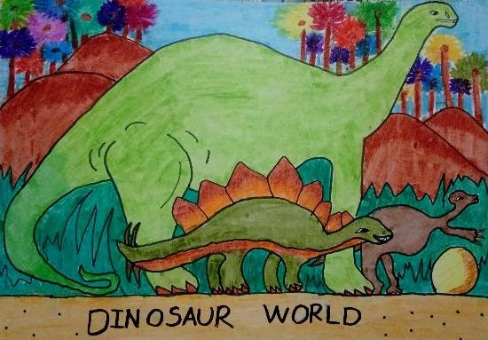 Dinosaur World, painting by Child Artist Thiyakshwa Sureshkumar