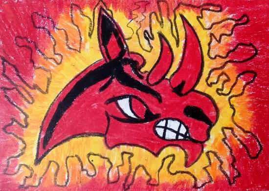 Charging Rhino, painting by Child Artist Thiyakshwa Sureshkumar