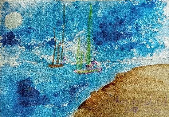 Moonlit sea, painting by Child Artist Hamsini Aswin