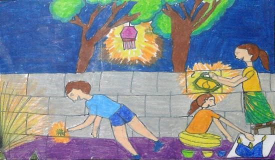 Diwali, painting by Child Artist Mahee Kaushik Desai Child art in Khula Aasmaan, a platform for creative expression by children & young adults Keywords: festival of light , festival painting , festival art , festival of light painting contest , festival of light painting competition , diwali View Portfolio icon Share Facebook Twitter Whats App Pinterest Description -- Art Number 19151 Artwork Title Diwali Artist Name Mahee Kaushik Desai Medium Oil Pastel on Paper Information