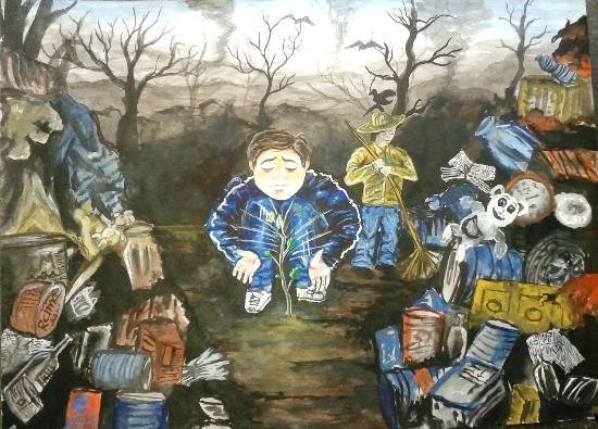 Plant Tree, painting by Child Artist Sandeep Badriprasad Kori