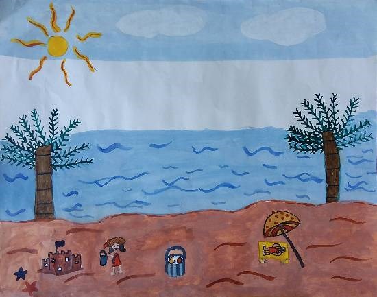 A day at beach Silver medal in Khula Aasman art competition for kids Keywords: beach , enjoying at beach , sea , seascape , water , nature View Portfolio icon Share Facebook Twitter Whats App Pinterest Description -- Art Number 19955 Artwork Title A day at beach Artist Name J S Anshika Medium Watercolour on Paper Size 8.27 x 11.69 inches (21.0058 x 29.6926 cm) Price Rs. 5,900 ($80.05) Information Enjoying a day at beach This painting by child artist J S Anshika received a Silver Medal in Khula Aasmaan kids art competition for October to December 2017.