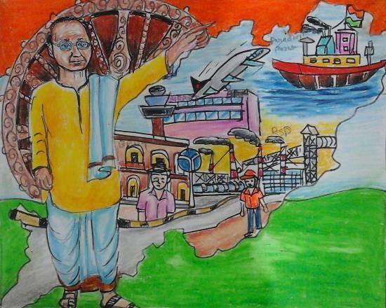 Role of Biju Patnaik in making Odisha, painting by Child Artist Jeeban Purohit