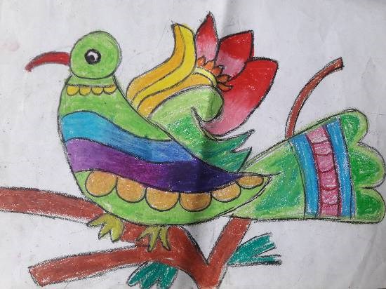 My favourite bird - Parrot, painting by Child Artist Aastha Mahesh Surve