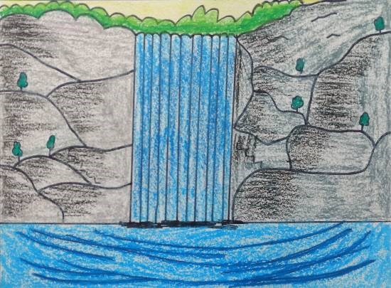 Waterfall, painting by Child Artist Ishita Mayur Patil