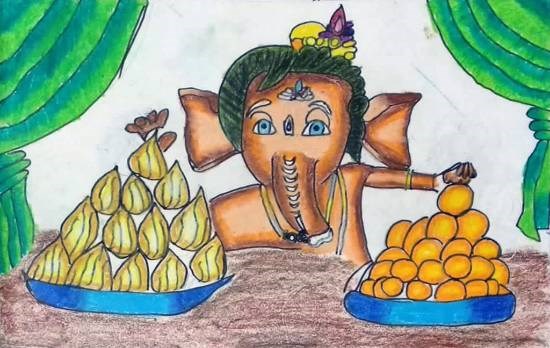 Ganesha, painting by Child Artist Mansvi Bhagwat