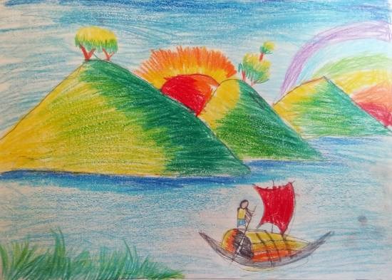 Sunset, painting by Child Artist Saanvi Rajendra Kulkarni