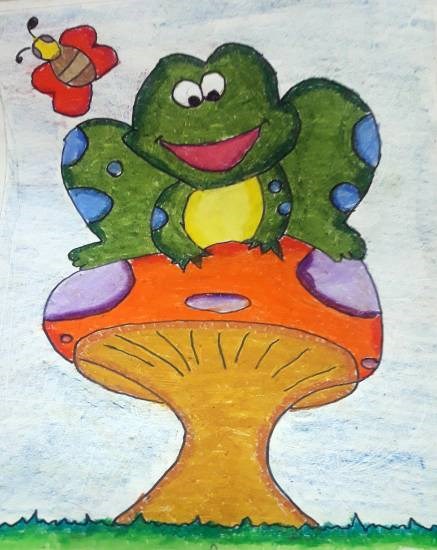 Frog, painting by Child Artist Antara Shivram Desai Children’s art in Khula Aasmaan, a platform for creative expression by children & young adults Keywords: frog , butterfly View Portfolio icon Share Facebook Twitter Whats App Pinterest Description -- Art Number 21345 Artwork Title Frog Artist Name Antara Shivram Desai Medium Oil Pastel on Paper Size 11.69 x 8.27 inches (29.6926 x 21.0058 cm) Information