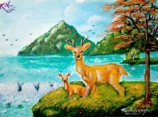 Deer in forest, painting by Child Artist Tusharanshu Kanik