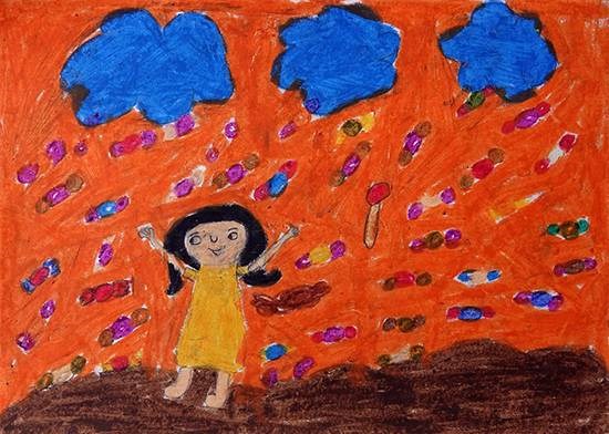 Happy Girl, painting by Child Artist Kundana Bhusara Bronze medal in Khula Aasmaan national painting contest Keywords: Girl , Happy girl , Sky , Rain , Dancing girl View Portfolio icon Share Facebook Twitter Whats App Pinterest Description -- Art Number 22119 Artwork Title Happy Girl Artist Name Kundana Bhusara Medium Oil Pastel on Paper Size 8.27 x 11.69 inches (21.0058 x 29.6926 cm) Information This painting by child artist Kundana Bhusara received a Bronze Medal in Khula Aasmaan kids art competition for January to March 2019. See the video about this artwork
