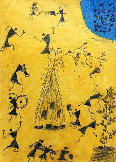 Warli Dancing, painting by Child Artist Vilas Sapate