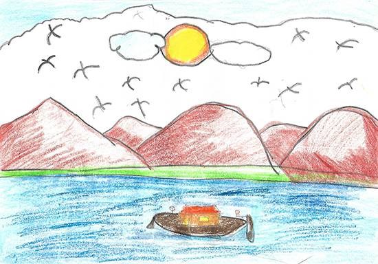 Scenery 2, painting by Child Artist Isha Bhattacharjee Child art in Khula Aasmaan, a platform for creative expression by children & young adults Keywords: nature , scenery , greenery , birds , sky , sun , tree , boat , river View Portfolio icon Share Facebook Twitter Whats App Pinterest Description -- Art Number 22633 Artwork Title Scenery 2 Artist Name Isha Bhattacharjee Medium Mixed Media on Paper Size 11.69 x 16.53 inches (29.6926 x 41.9862 cm) Information Medium used - Pencil Color and Pastel Color, Crayon, Black Sketch Pen