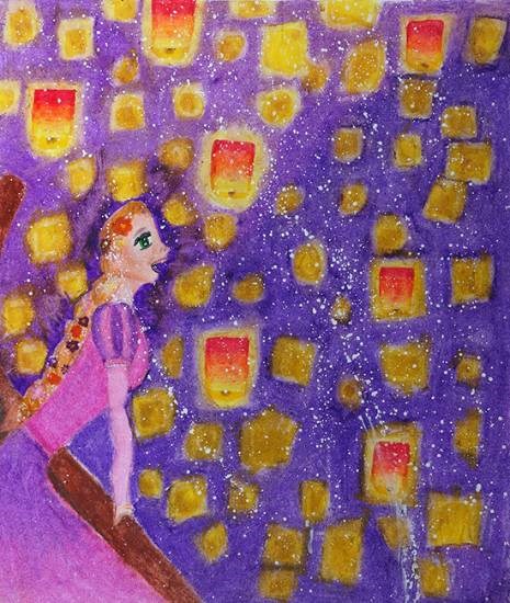 Rapunzel, painting by Suhani Mishra Honorable mention in Khula Aasmaan free drawing contest for children Keywords: my favorite movie , Tangled , Rapunzel , favorite film , fictional character , Disney animation View Portfolio icon Share Facebook Twitter Whats App Pinterest Description -- Art Number 23417 Artwork Title Rapunzel Artist Name Suhani Mishra Medium Oil pastel & Acrylic paint on Paper Size 11.69 x 8.27 inches (29.6926 x 21.0058 cm) Price Rs. 5,900 ($80.05) Information It is a drawing piece that I drew which is inspired from the movie Tangled and the part that I drew was the most beautiful part of the movie. This painting by child artist Suhani Mishra (13 years) received a Honorable Mention in Khula Aasmaan free drawing contest for children for January to March 2020. See the video about this artwork