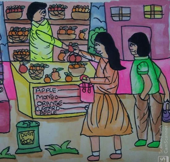 fruit shopping, painting by Child Artist Antara Shivram Desai View Portfolio icon Share Facebook Twitter Whats App Pinterest Description -- Art Number 23434 Artwork Title fruit shopping Artist Name Antara Shivram Desai Medium Oil Pastel on Paper Information fruit shopping