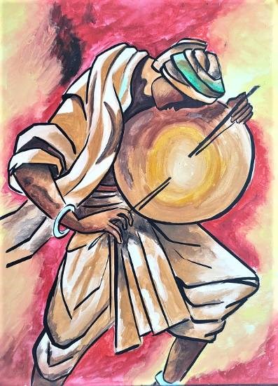 Echoes in india Shortlisted in Khula Aasmaan art competition for young adults Keywords: our Indian heritage , use of different colors in the painting , different cultures and traditions , cultural difference and traditional difference in india , indian heritage , legacy of indian heritage View Portfolio icon Share Facebook Twitter Whats App Pinterest Description -- Art Number 23911 Artwork Title Echoes in India Artist Name N J Shruti Medium Poster colour on Paper Size 16.53 x 11.69 inches (41.9862 x 29.6926 cm) Information The above drawing celebrates the legacy of our Indian heritage. The use of different colors in the painting represents the different cultures and traditions followed in India. The painting is so named "The Echoes of India" as the man playing drum echoes the sounds of our Indian Heritage. This painting by young artist N J Shruti (17 year) received a Shortlist in Khula Aasmaan art competition for young adults for April to June 2021.