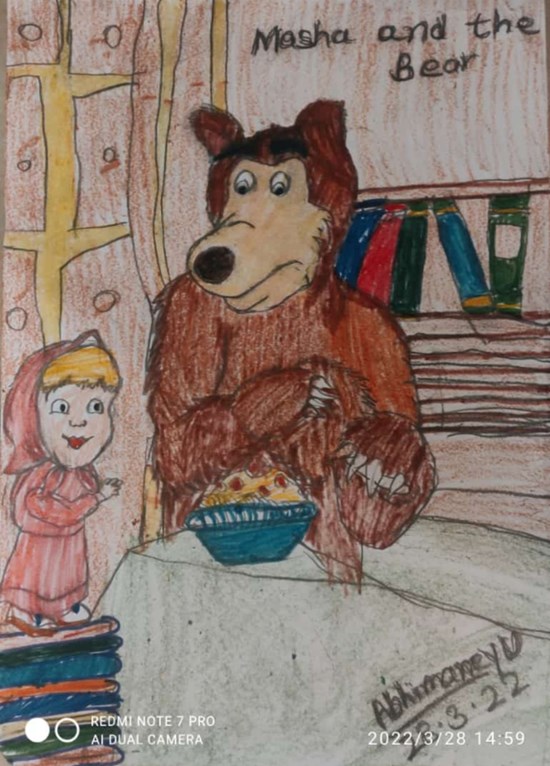 MASHA & BEAR CARTOON, painting by Child Artist Abhimaneyu Singh View Portfolio icon Share Facebook Twitter Whats App Pinterest Description -- Art Number 24527 Artwork Title MASHA & BEAR CARTOON Artist Name Abhimaneyu Singh Medium Crayons on Sheet Size 297 x 210 x 8 inches (754.38 x 533.4 x 20.32 cm) Information The shows focuses on the adventures of Little girl named Masha and her caring friend the bear that always keeps her safe from disaster