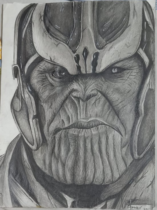 Thanos, painting by Child Artist Arnav Alok View Portfolio icon Share Facebook Twitter Whats App Pinterest Description -- Art Number 24799 Artwork Title Thanos Artist Name Arnav Alok Medium Pencil shading on Sheet Size 16 x 12 inches (40.64 x 30.48 cm) Information Pencil shading in 80 gsm paper