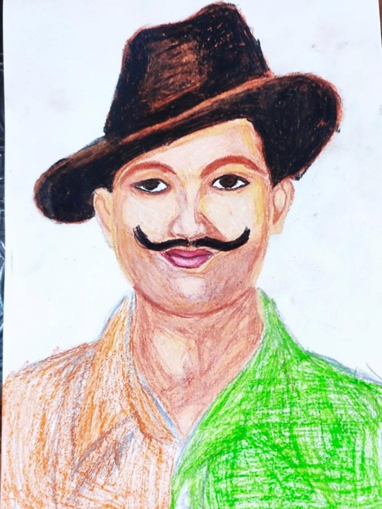 Shri Bhagat singh, painting by Child Artist Aarnav Pillai View Portfolio icon Share Facebook Twitter Whats App Pinterest Description -- Art Number 25010 Artwork Title Shri Bhagat singh Artist Name Aarnav Pillai Medium Oil pastel and graphite pencil on Paper Information Bhagat Singh was a charismatic Indian revolutionary who participated in the mistaken murder of a junior British police officer in what was to be retaliation for the death of an Indian nationalist.