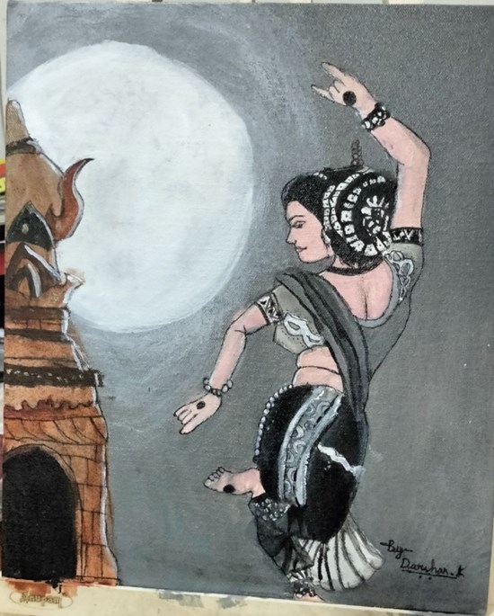 Indian performance of art (dance) Keywords: India , dance , Indian dance performance , art , Odissi dance , Odisha View Portfolio icon Share Facebook Twitter Whats App Pinterest Description -- Art Number 25811 Artwork Title Indian performance of art (dance) Artist Name Darshan K. Medium Acrylic & Gel Pen on Canvas board Information India is known for variety of performance in arts. This is the Artwork of Indian Dance Odissi, which is famous in Odisha, a state in India. I drew this work using Acrylic Colours and Gel Pen and Canvas Board.
