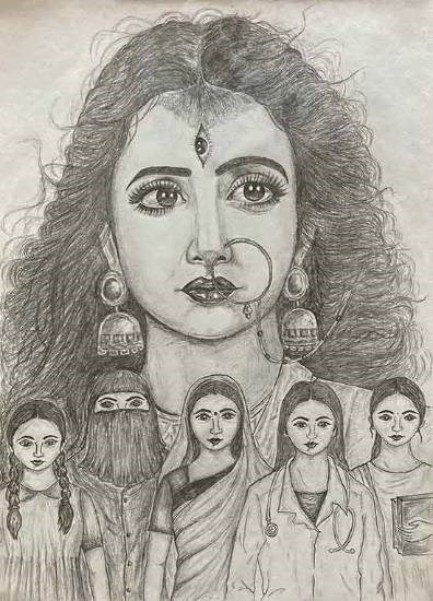 Maa Durga hidden within every woman, painting by Swastika Maiti