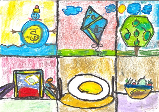 Shapes, painting by Child Artist Kovendhan V A View Portfolio icon Share Facebook Twitter Whats App Pinterest Description -- Art Number 27905 Artwork Title Shapes Artist Name Kovendhan V A Medium Oil Pastel on Sheet Size 8 x 12 inches (20.32 x 30.48 cm) Information Young artist's creation from different shapes. Circle shaped snowman, Diamond shaped Kite, Hexagon shaped watermelon tree, Square shaped Photo frame, Oval shaped egg omelette and Semicircle shaped Fruit basket.