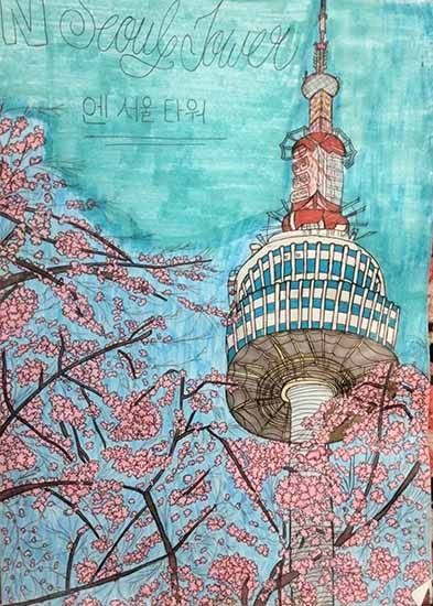 N Seoul Tower painting by Alveena Keywords: N Seoul Tower , Namsan Tower , biggest tower , South Korea , biggest tower of South Korea , beauty of Namsan Tower View Portfolio icon Share Facebook Twitter Whats App Pinterest Description -- Art Number 27988 Artwork Title N Seoul Tower Artist Name Alveena Medium Markers on Paper Size 8.3 x 11.8 inches (21.082 x 29.972 cm) Information N Seoul Tower, which is also known as Namsan Tower, is biggest tower of South Korea. It looks so beautiful, specially in Spring season when cherry blossom flower blooms. I wanted to show this beauty by drawing it.
