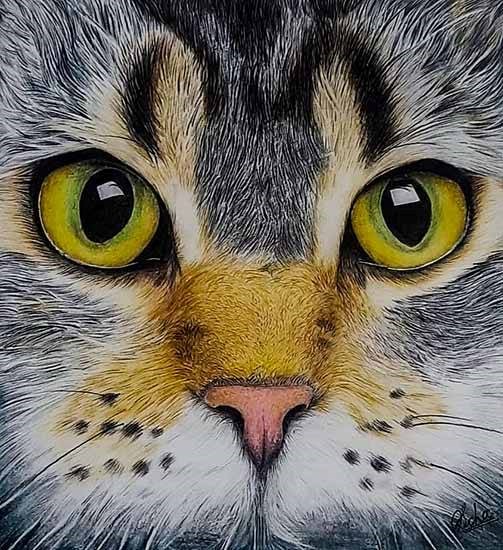 Cat painting by Rucha Sohoni Keywords: cat , animal , pet , confidence View Portfolio icon Share Facebook Twitter Whats App Pinterest Description -- Art Number 28154 Artwork Title Cat Artist Name Rucha Sohoni Medium Colour pencils on Paper Size 16.53 x 11.69 inches (41.9862 x 29.6926 cm) Information It is my first colour pencil portrait ever which played a major role in boosting my confidence.