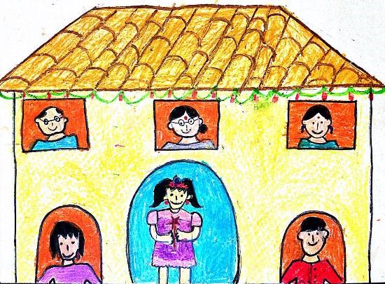Family, painting by Child Artist Asmi Chirag Shah