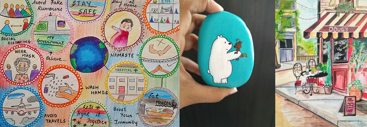 Art in the time of Corona, is an art project initiated by Khula Aasmaan and Indiaart. This unique art initiative appealed to children, college students and elders to create art during lockdown to fight the fear and panic arising out of the coronavirus pandemic. We announced this art project on the first day of the national lockdown. The response has been overwhelming and from all over India. This project has been supported by Finolex and Mukul Madhav Foundation.