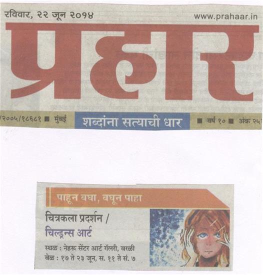 Here is the photo gallery of the pictures from Children’s Art Exhibition at Nehru Centre, Worli, Mumbai which was held in June 2014. This exhibition was conceptualised and presented by Indiaart. The pictures show the huge and enthusiastic response from participating child artists, their parents, school children and the interaction of parents and children with Milind Sathe and Chitra Vaidya. The grand finale was the ceremony of distribution of certificates and talk by senior artist Prabhakar Kolte who addressed the parents and children.