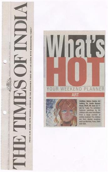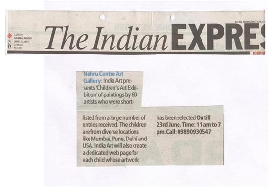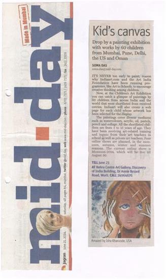 Children's Art Exhibition at Nehru Centre, Mumbai presented by Indiaart Gallery in June 2014 received a good coverage in the print media. Here are the clippings that appeared in various newspapers in Mumbai.
