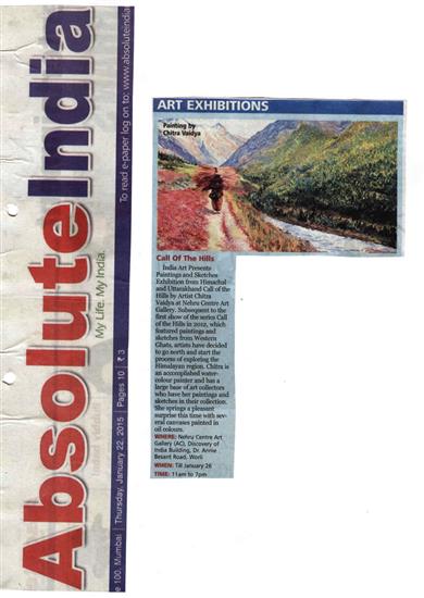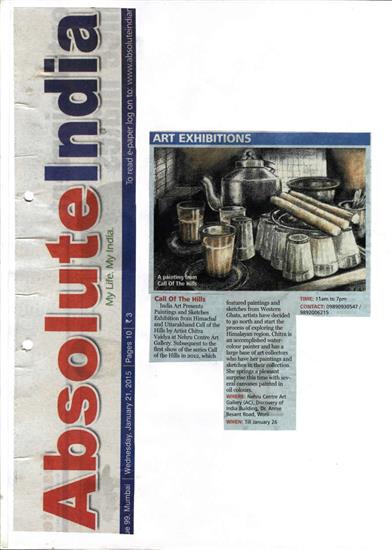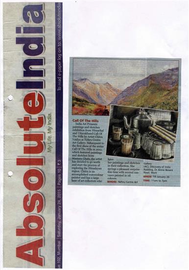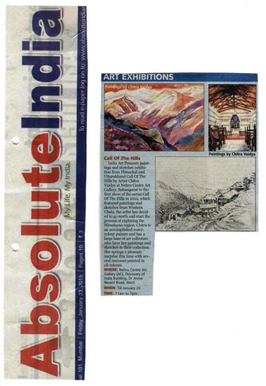 See the media coverage for the paintings exhibition “Call of the Hills” featuring paintings and sketches by artist Chitra Vaidya on Himachal and Kumaon hills, landscapes and people. The art exhibition was covered by a large number of print media publications.