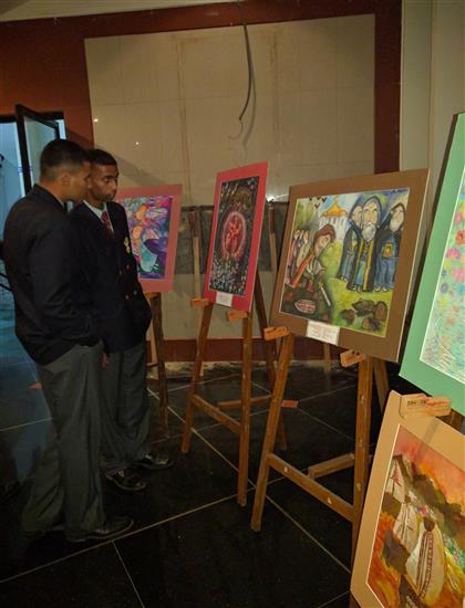 Cadets of National Defence Academy looking at paintings by Russian children - 1