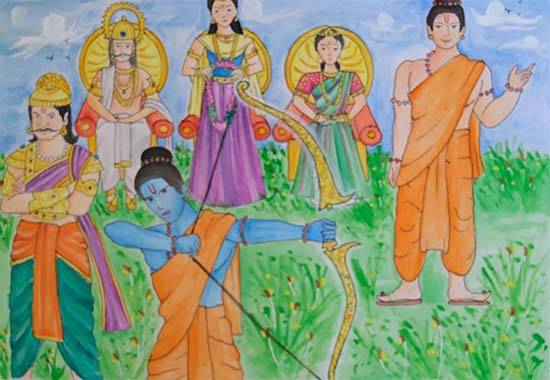 Want to Buy Prabhu Shree Ram & Bharat Milap by Dnyanesh Tupe Watercolour on Paper 10.5 x 14.5 inches 26.67 x 36.83 cm 6,000 ($81)