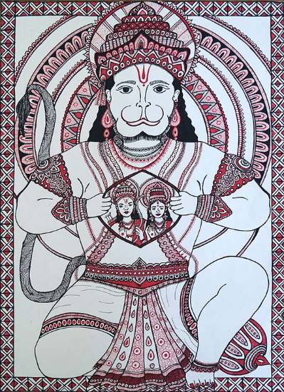 Want to Buy Shri Hanuman tore his Chest Open by Dhanshri Kabra Pen & Ink on Paper 16.53 x 11.69 inches 41.99 x 29.69 cm 4,000 ($54)