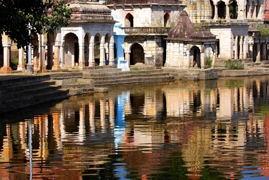 And in that sun's first suggestion the brass figurines glint, a pantheon of Hindu divinity, pyramids of vermilion radiant in reds. A thousand perfect men and a thousand beautiful women on the open road, desiring the river. The river that tempts, a longing, with a mind, reflects.