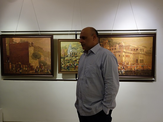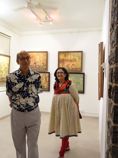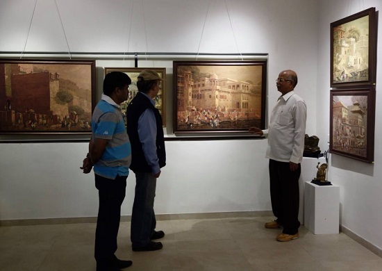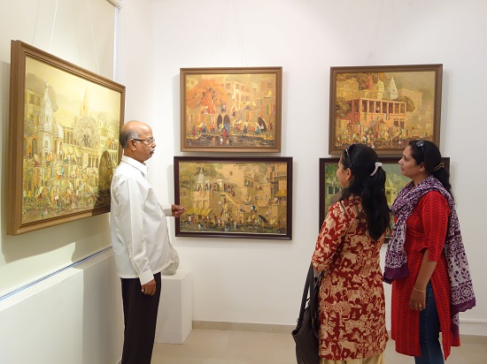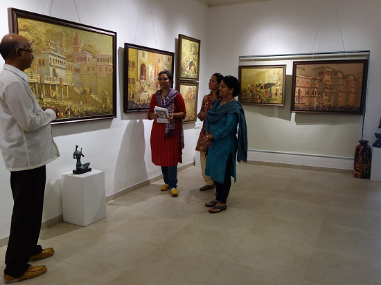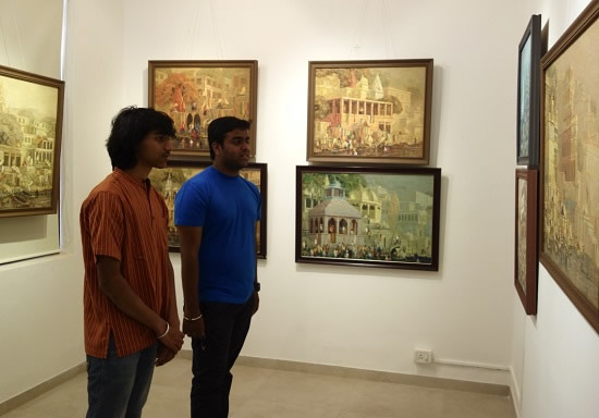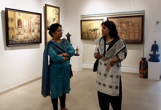 Guests at Indiaart Gallery for the show "Banaras" by Yashwant Shirwadkar. This exhibition features paintings of Banaras ghats on river Ganga done in Oil on Canvas by senior artist Shri. Yashwant Shirwadkar.