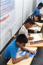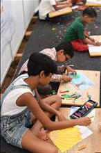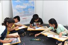 Totally focused in creating their artwork at Khula Aasmaan stall ar Bharatiya Vigyan Sammelan 2017