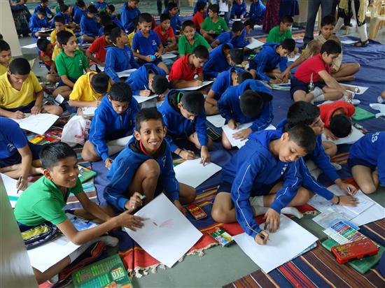 Children painting at Khula Aasmaan workshop, New English Medium School, Pune - 2
